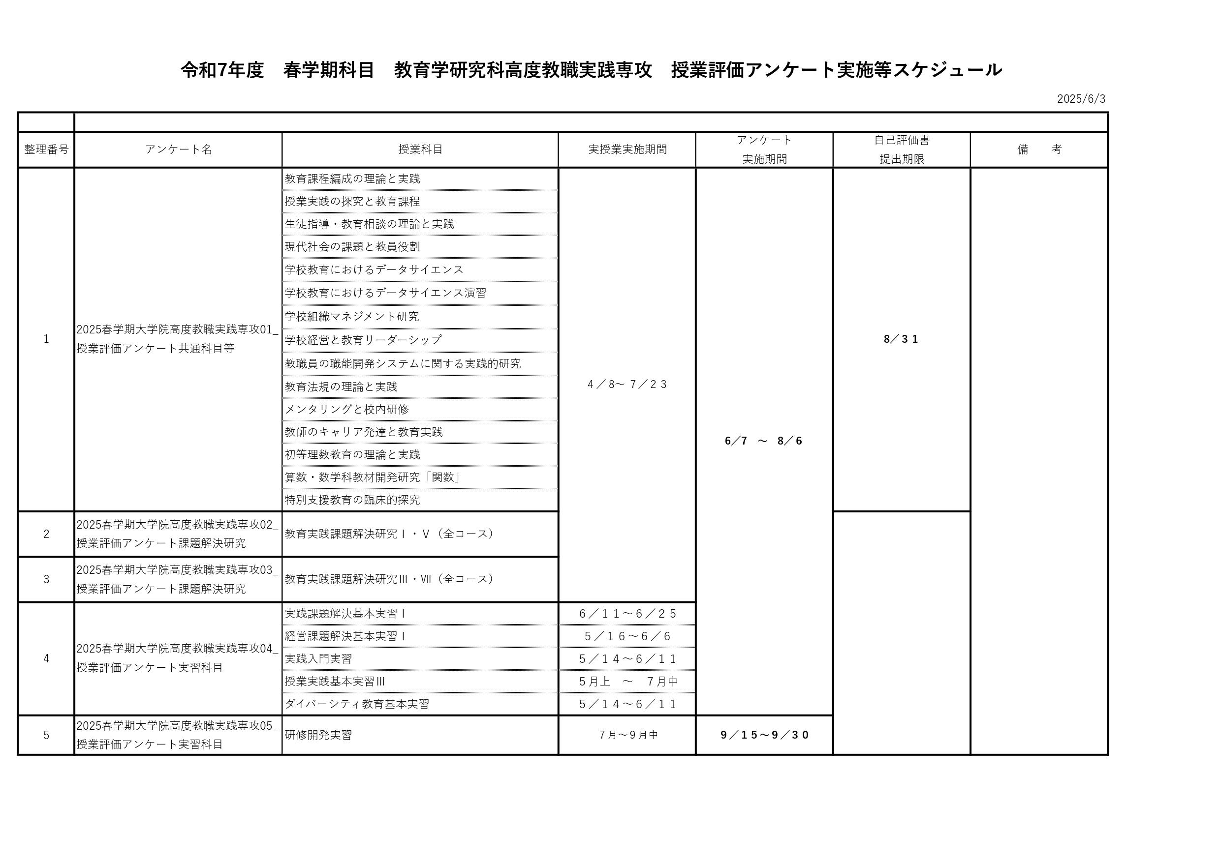25春院 令和7年度(春)教職大学院FD事業授業の自己評価